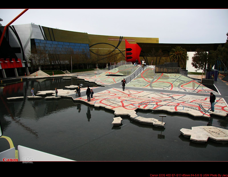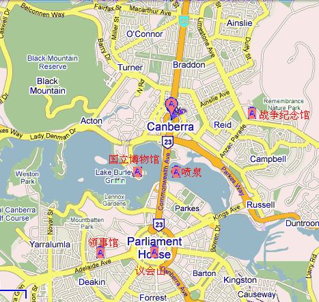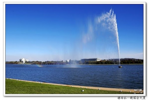 早晨7 点半我和老婆准时出发. 尽管阴雨的天气多少有点扫兴, 还有昨天tomtom突然不工作了.SD卡莫名被格式化了,所有的东西都丢了.害得我工作到凌晨2点重装,似乎是个不好的兆头, 但是还是挡不了我们的兴奋. 我们首站驱车前往首都堪培拉。路上行程大致是3 个多小时。中间还要经过Lake George. 澳洲神秘的乔治湖, 它的神秘之处至今没有一个科学家给出正确的解释。Lake George 18 年为一个周期,有水与无水的状态交替。有水的时候,清澈见底,浅处不过1 2 米,深处不过10 余米,湖水漫过水草,晶莹透亮;各类鱼种自由穿梭,色泽清晰;远看行驶在旁边高速路上的车似在水中行,倒影在湖中的车身,随着潋滟的波光晃动,与树木倒影交相辉映,似一幅风景,更似油画。所以,悉尼、墨尔本、堪培拉等周围城市的市民慕名而来,或站在山上的风景台欣赏留影,或停步钓鱼。18 年之后,湖水便会"消失",留下像今天这样的草坪,并且会保持18 年。再过18 年,这里又将水满倾城……"18 年一个轮回"还只是Lake George 神秘之一,之二,当湖水退尽的时候,湖面上不会留下任何一只鱼的尸体,鱼到底去了哪里?科学家都无法解释。有人说,这里应该有一条暗河,鱼是从暗河中流入大海,但至今都没有人找到暗河的出口,于是,这两大谜,持续到现在无人解开。当前湖面"草坪"边靠近高速公路处,有许多类似水塘的池,据说这些都是"过滤池",政府修建的。这些池子的用图在于将车行留下的油污过滤之后再灌入草坪,这样草坪就不会受污染,动物包括牛、马、袋鼠就不会因吃了这里的草而受伤害,同时也确保动物的皮质和肉质。